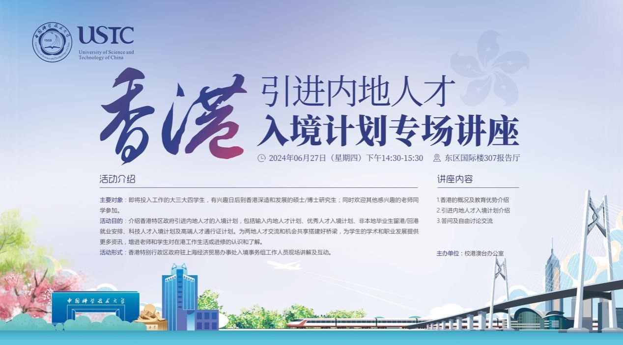 活动目的:介绍香港特区政府引进内地人才的入境计划,包括输入内地人才计划、优秀人才入境计划、非本地毕业生留港/回港就业安排、科技人才入境计划及高端人才通行证计划。为两地人才交流和机会共享搭建好桥梁,为学生的学术和职业发展提供更多资讯,增进老师和学生对在港工作生活或进修的认识和了解。
