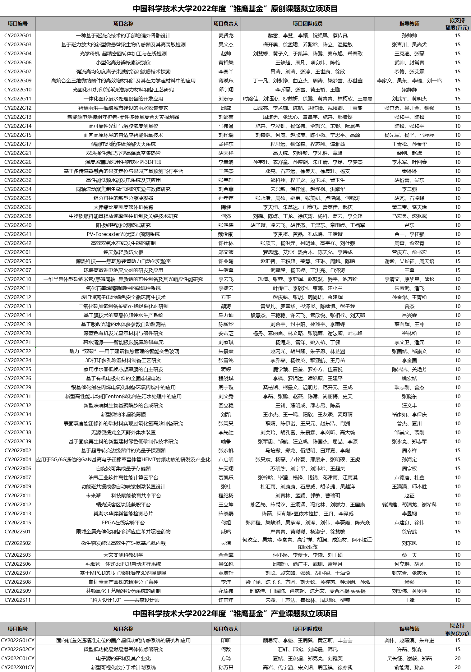 附件1:中国科学技术大学2022年度“雏鹰基金”拟立项项目