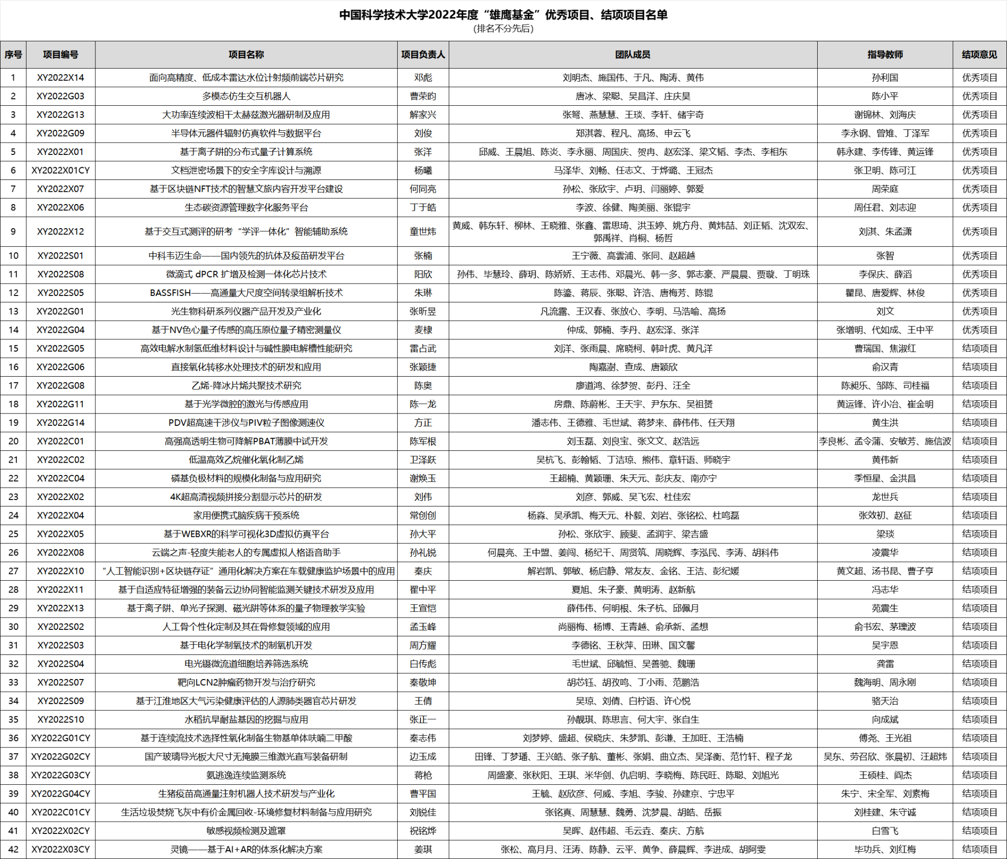 附件2:中国科学技术大学2022年度“雄鹰基金”优秀项目、结项项目名单