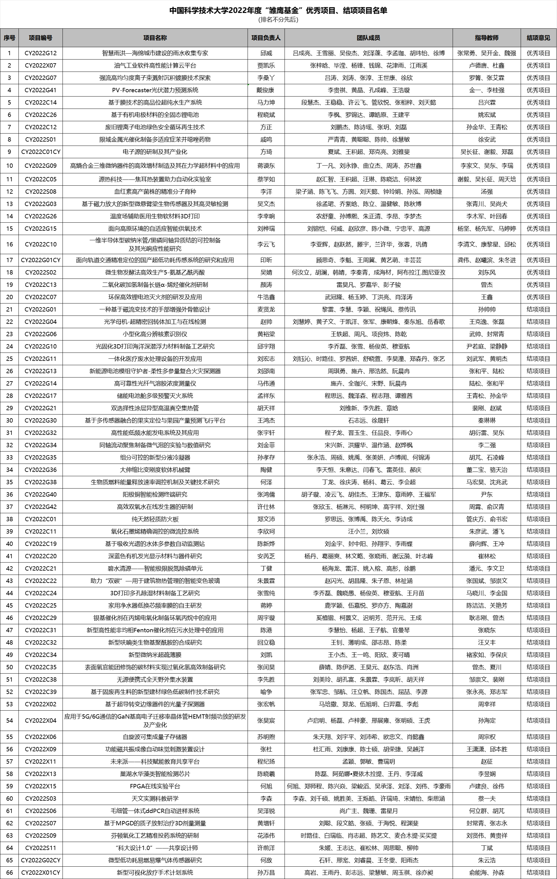 附件1:中国科学技术大学2022年度“雏鹰基金”优秀项目、结项项目名单