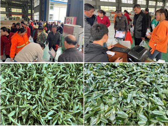 午后,龙马村标准化茶厂内是另一番热闹的景象。茶农们从四面八方赶来,耐心地排着队伍,将上午采摘的鲜叶供给茶厂。茶厂以质论价,优质优价,应收尽收。对茶农来说,采摘的鲜叶及时销售变现,是一份稳稳的幸福。