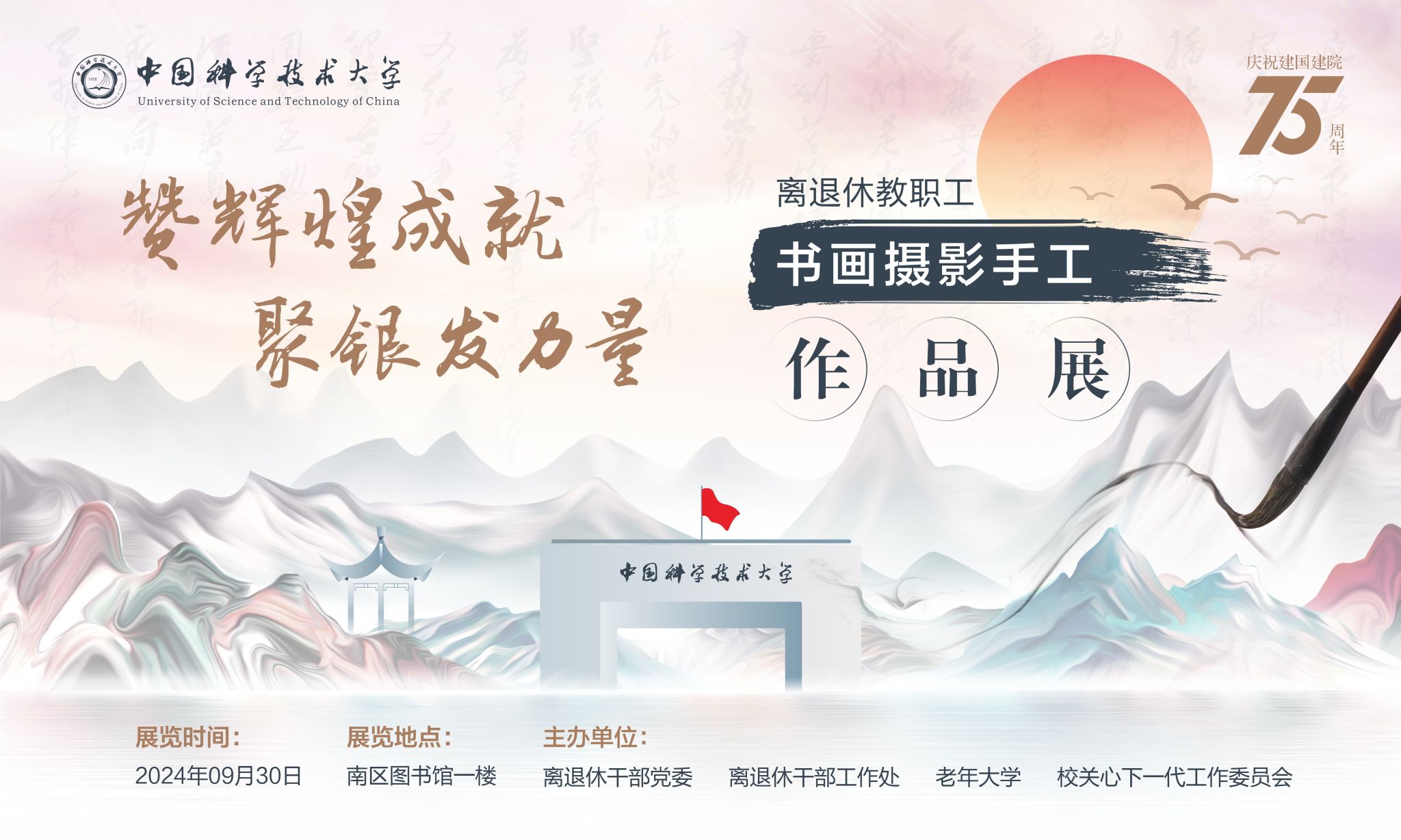 为庆祝中华人民共和国成立75周年、中国科学院建院75周年及中国科学技术大学建校66周年,离退休干部党委、离退休干部工作处联合老年大学、校关心下一代工作委员会举办“赞辉煌成就 聚银发力量”离退休教职工书画摄影手工作品展。广大离退休教职工以笔为舟、以墨为帆,捕光逐影、巧手匠心,用艺术的笔触绘就新时代中国繁荣昌盛的壮丽画卷,将平凡的生活赋予不凡的意义,展现出新时代老有所为、老有所乐的精神风貌。