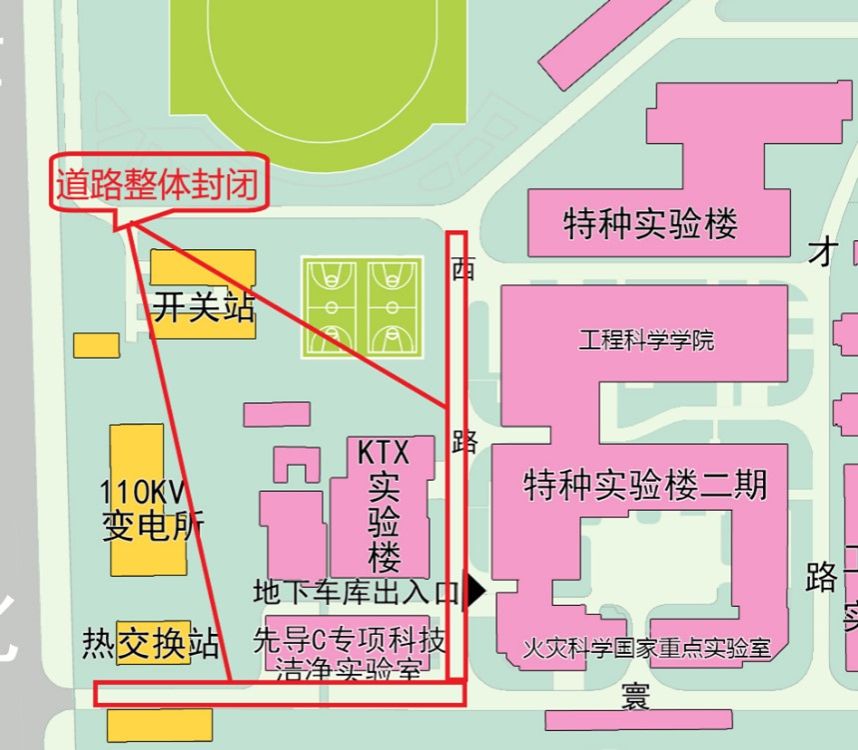 由于西校区供热管网改造施工需要,需对寰宇西路(运动场东南角-KTX实验楼南侧)及寰宇南路路段进行开挖施工,计划于2025年7月24日至2025年8月31日对相关道路临时封闭(具体封闭范围见附图),过往车辆及人员请绕行,给广大师生带来的不便,敬请谅解。