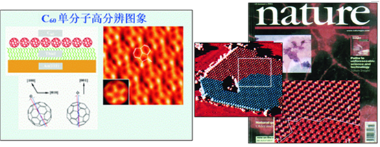 利用STM获得的C60单分子图像 C60二维分子取向畴 实现了单个分子内部的化学反应
