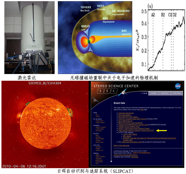 立足空间科学领域的若干科学前沿和国家重大需求,开展日地空间物理、中高层大气物理、空间基础等离子体物理等研究,在太阳风暴及其空间天气效应、近地空间大气动力学和气候学、磁场重联与粒子加速基本物理过程等方面取得一系列创新成果;发展了先进探测技术;自主研发并建成了具有国际水平的地基中高层大气观测设备,以及空间粒子探测有效载荷研制平台。