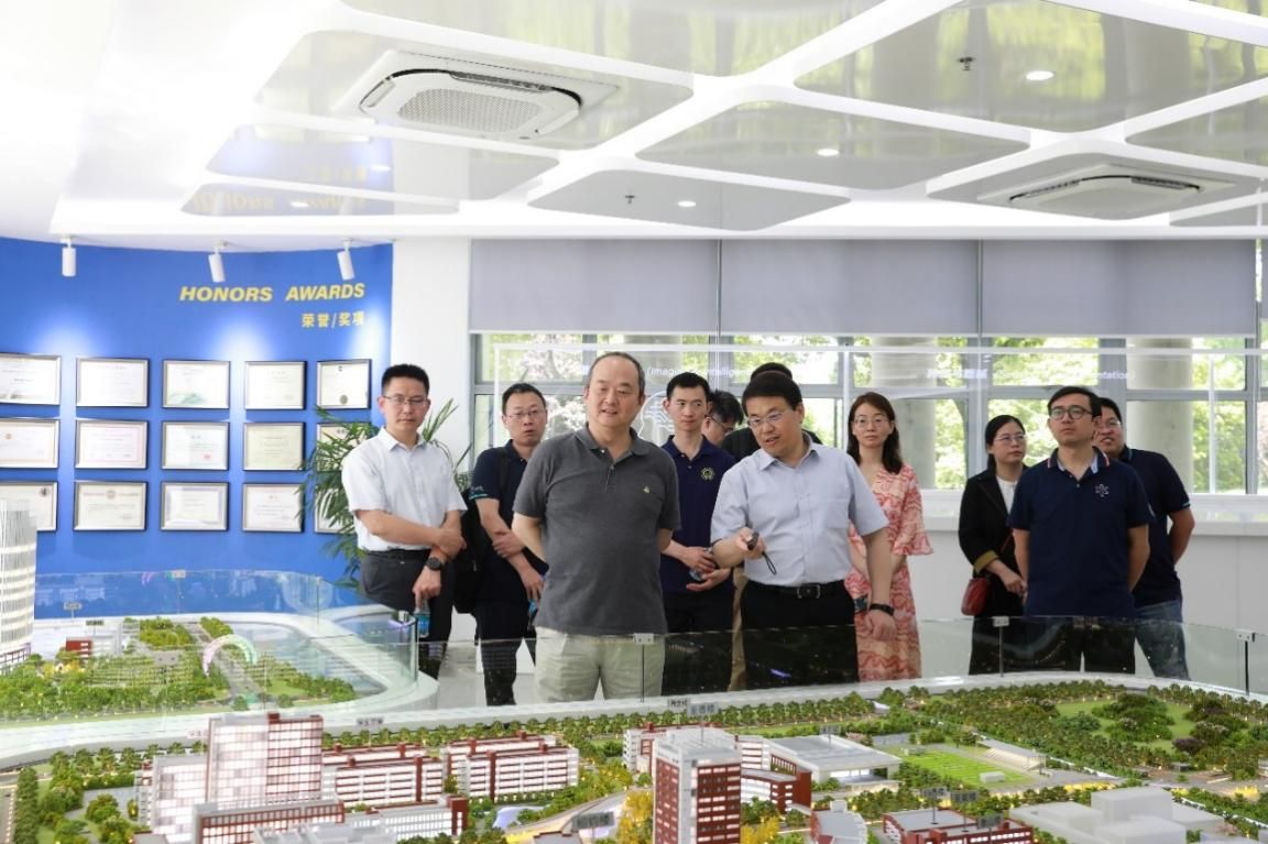 吴枫一行首先来到仁爱路校园实地调研。在明德楼展厅,苏州高研院副院长倪瑞通过沙盘介绍了高研院校园规划和建设相关情况。随后调研组参观了高研院亲民楼主机房以及智能云计算研究中心,了解高研院网络信息建设以及软件学院智能计算系统学科方向发展情况。