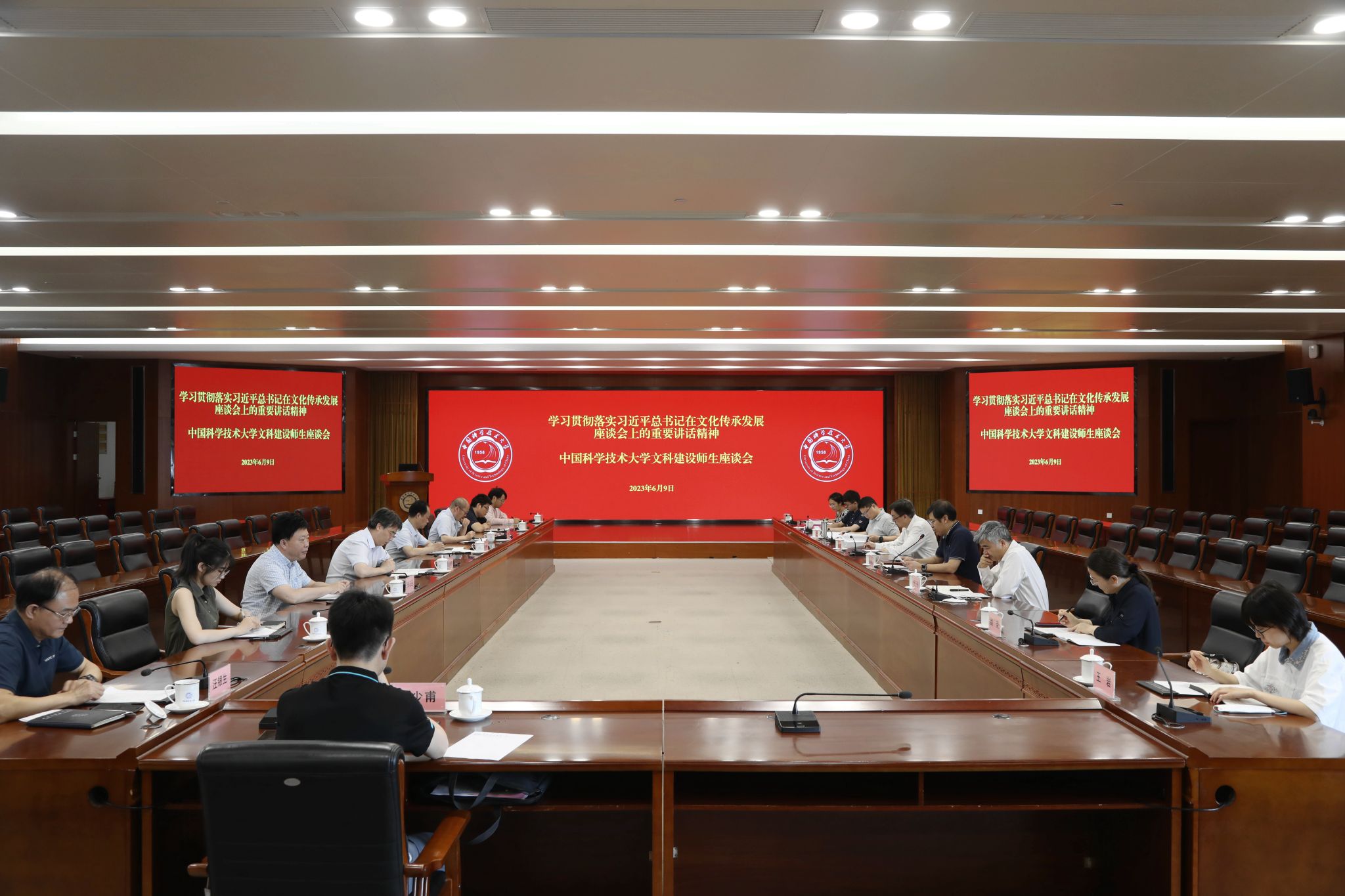 为深入学习贯彻落实习近平总书记在文化传承发展座谈会上的重要讲话精神,6月9日上午,中国科学技术大学文科建设师生座谈会在东校区师生活动中心五楼报告厅室举行。校党委书记舒歌群出席会议并讲话,校党委副书记、党委宣传部部长邓建松主持会议。相关学院和部门师生代表参加座谈。