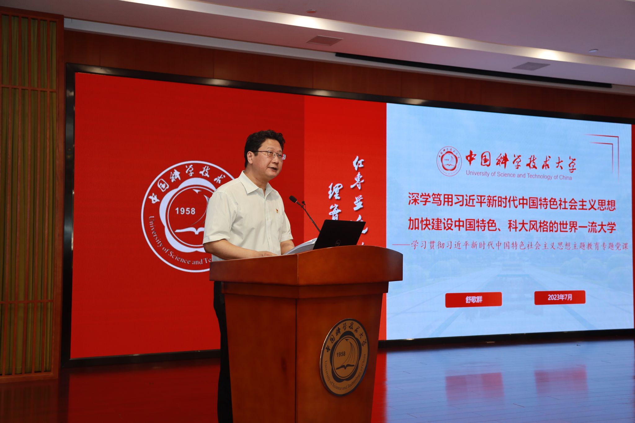 7月5日下午,贝博学习贯彻习近平新时代中国特色社会主义思想主题教育专题党课报告会在东活五楼报告厅举行。校党委书记舒歌群作题为《深学笃用习近平新时代中国特色社会主义思想 加快建设中国特色、贝博风格的世界一流大学》的专题党课报告。中央第五十四指导组组长、中国人民大学原党委书记靳诺,指导组成员、教育部宣传教育中心技术处副处长赵冬玲等同志到会指导。在校校领导,全体中层领导干部,基层党支部书记、师生党员代表参加学习。党课由校党委常务副书记蒋一主持。