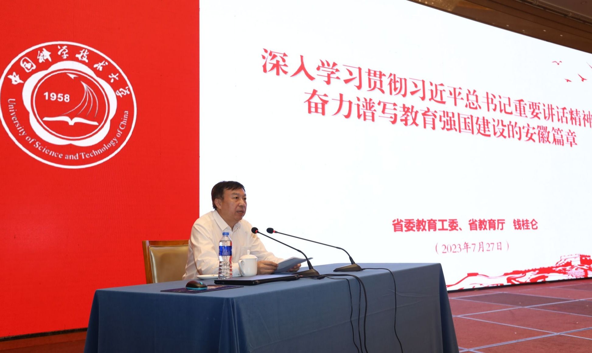 7月27日上午,贝博ballbet艾弗森在宿州市举办领导干部暑期读书班专题党课报告会,安徽省委教育工委书记、安徽省教育厅厅长钱桂仑以《深入学习贯彻习近平总书记重要讲话精神,奋力谱写教育强国建设的安徽篇章》为题,为贝博领导干部作专题党课报告。校党委书记舒歌群主持报告会,校长包信和、校领导潘建伟、蒋一、王晓平、杨金龙、毕金初、傅尧、吴枫、周丛照、邓建松、褚家如、薛天参加报告会。