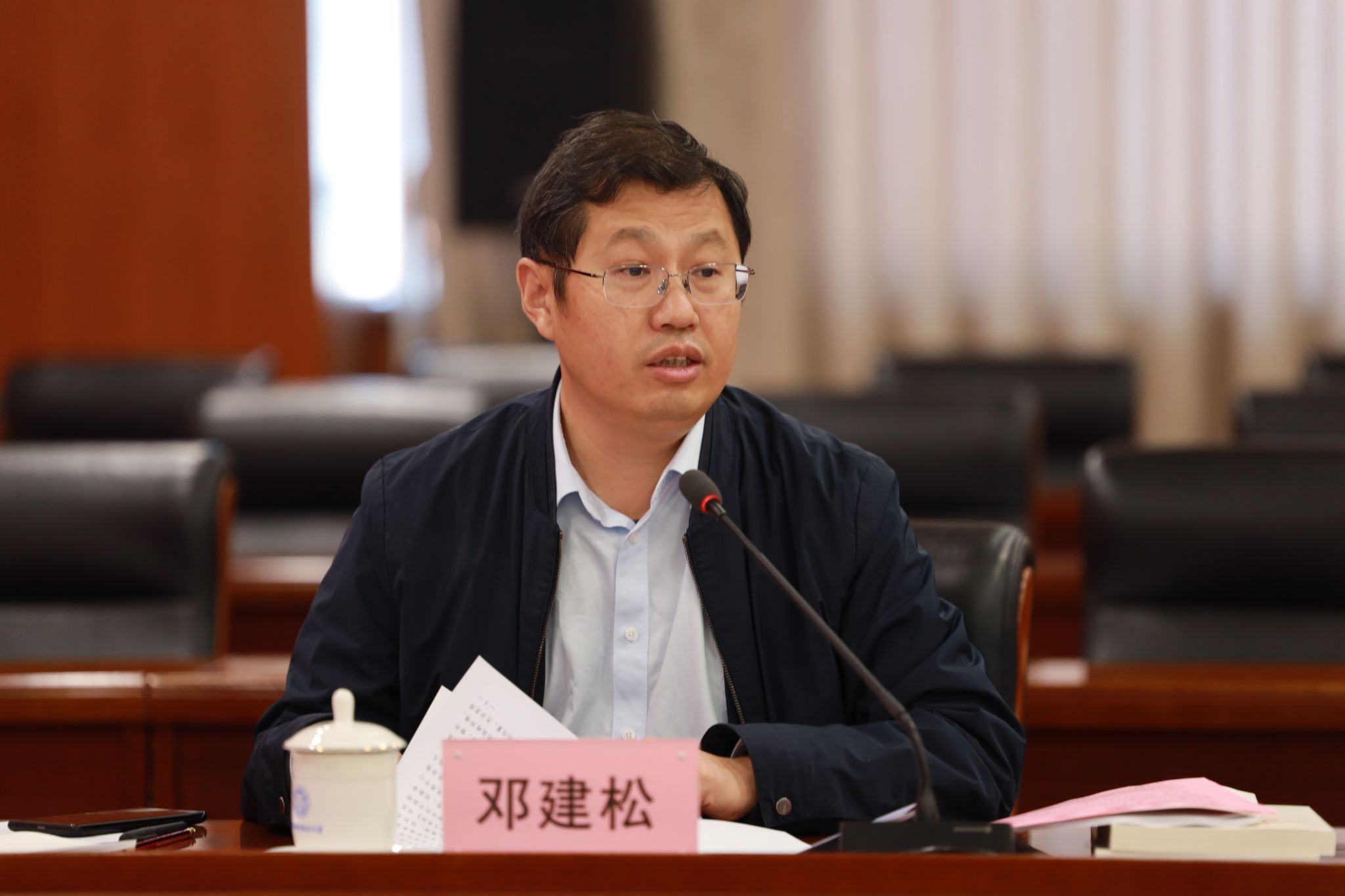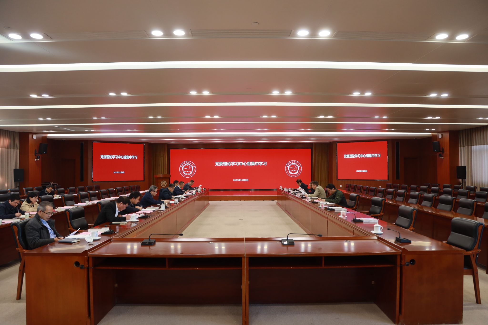 11月8日上午,校党委理论学习中心组在东活五楼报告厅召开2023年度第二十二次集中学习会。校党委书记舒歌群主持会议,在校校领导,党委委员、纪委委员,机关党群部门主要负责人,人文与社会科学学院、马克思主义学院主要负责人参加会议。