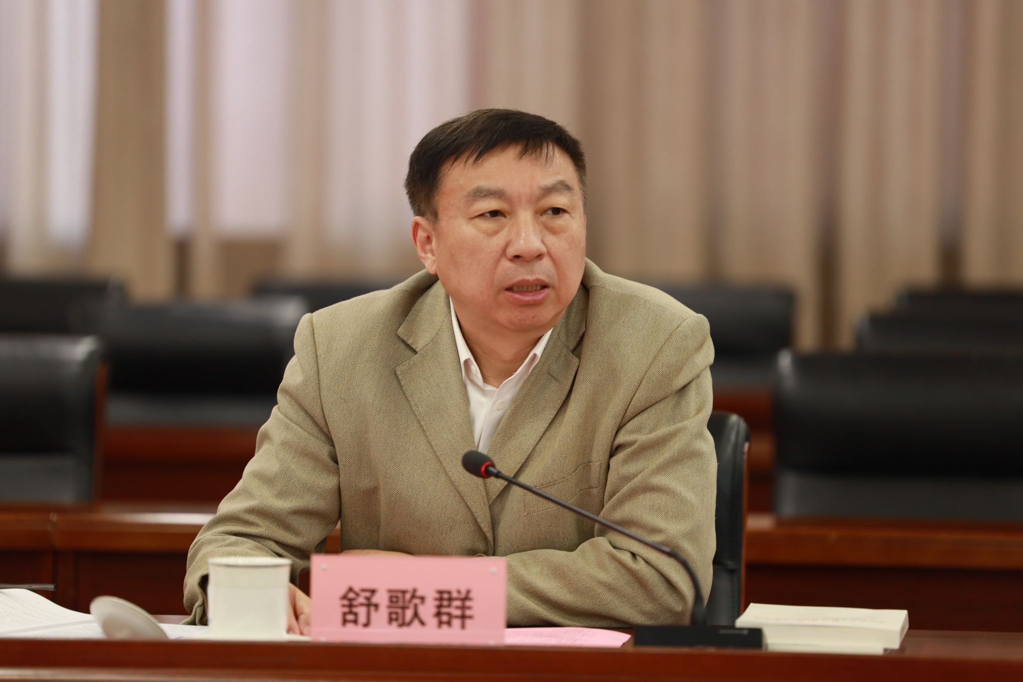 舒歌群指出,要在提高党委理论学习中心组学习质量上下功夫,及时将理论学习的成效落实到高质量工作上,切实把理论学习的成效转化为办学治校能力。要深入学习贯彻习近平总书记对宣传思想文化工作作出的重要指示精神和全国宣传思想文化工作会议精神,深刻认识习近平文化思想的丰富内涵,不断增强责任感、使命感,以“七个着力”指引学校宣传思想文化工作展现新气象新作为。要扎实做好学校统一战线工作,铸牢中华民族共同体意识,加强妇女工作相关组织建设,大力弘扬科教报国传统、充分发挥留学归国人员重要作用,凝聚合力,为办出中国特色世界一流大学贡献智慧力量。