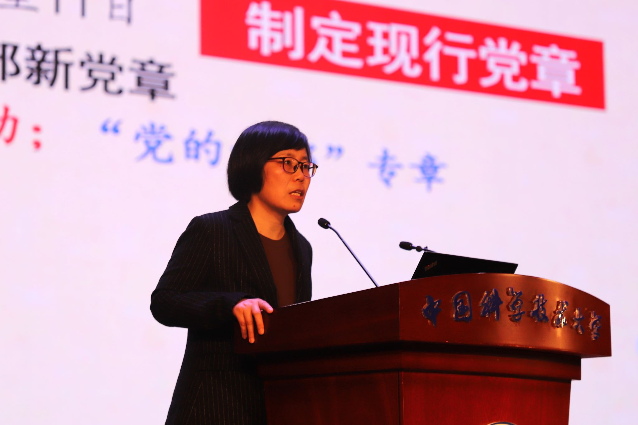 开班仪式后,刘红运教授为培训班学员作题为《学习遵守党章 增强党员意识》的专题报告。刘红运教授从党的二十大修改党章的必要性和原则展开,详细介绍了建党以来的8次党章制定和11次党章修订内容。她对《中国共产党章程(修正案)》的主要内容进行了讲解,深刻阐明了习近平新时代中国特色社会主义思想是中国特色社会主义理论体系的重要组成部分,是当代中国马克思主义、二十一世纪马克思主义,必须长期坚持并不断发展。她强调全体学员应该认真学习党章,严格遵守党章,增强党员意识,为实现中国式现代化建设凝聚青春力量。