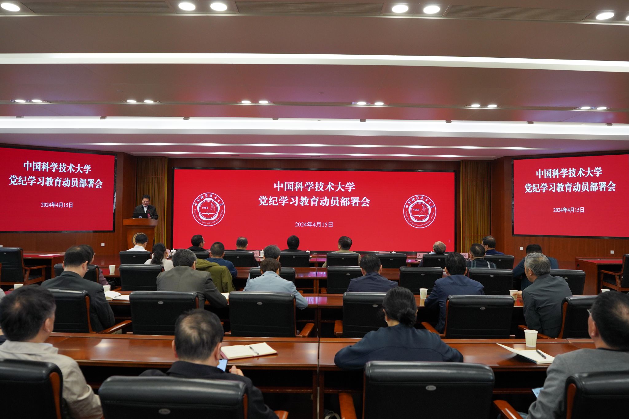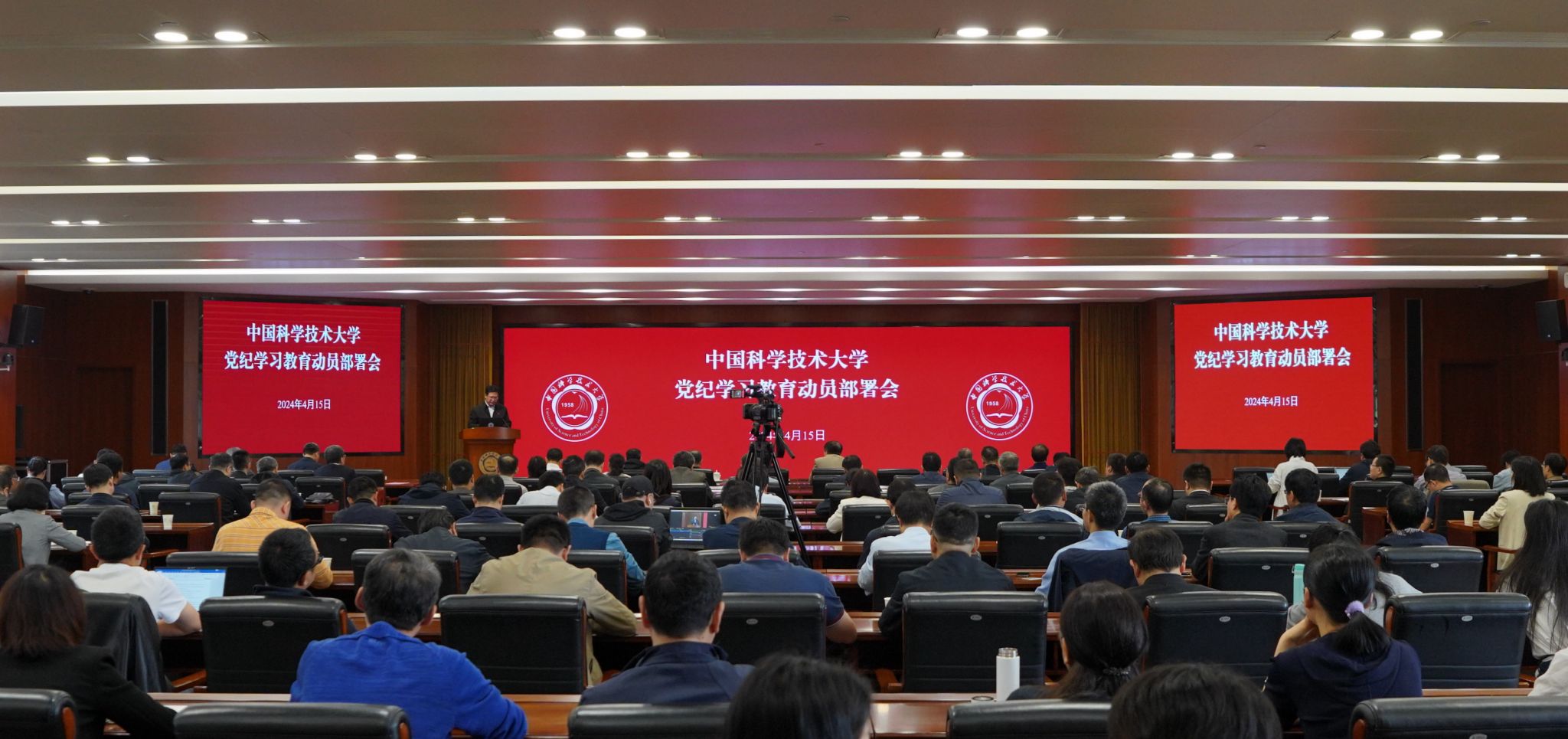 4月15日,中国科学技术大学在东活五楼报告厅召开党纪学习教育动员部署会,传达学习习近平总书记关于开展党纪学习教育的重要讲话和重要指示精神以及上级会议、文件精神,对学校党纪学习教育进行动员部署。校党委书记舒歌群作动员讲话,校长包信和等校领导班子成员参加会议,校党委常务副书记蒋一主持会议。