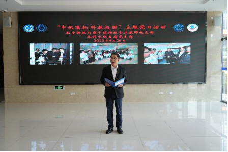 4月26日下午,本科生院直属党支部和粒子物理与原子核物理专业教师党支部,在中国科学院微观磁共振重点实验室共同开展“牢记嘱托 科教报国”主题党日活动。校党委常委、副校长、本科生院党工委书记周丛照现场参会并作指导讲话。本次活动由粒子物理与原子核物理专业教师党支部书记石发展主持。