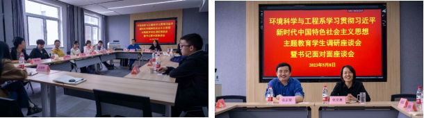 为扎实开展学习贯彻习近平新时代中国特色社会主义思想主题教育,全面贯彻党中央关于在全党大兴调查研究的重大部署,提升学生培育效果,5月8日,环境科学与工程系(以下简称环境系)在东区计算小楼召开本科生调研暨书记面对面座谈会。系党总支书记张文真、副主任花正双、班主任王怡然与10余名2021级本科生参加座谈会,会议由张文真主持。