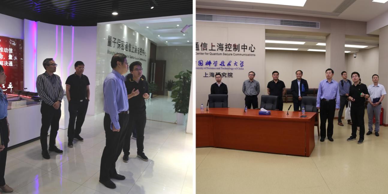 在院党委书记陈良高等的陪同下,邓建松一行参观了量子保密通信上海控制中心,听取了实用化量子通信技术发展历程及实用化进展的汇报。