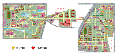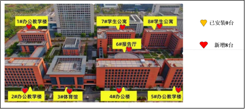 在对原有AED设备进行更换维护保养的基础之上,新旧AED设备皆在外观和定位监管上进行了调整升级。所有AED设备皆更换、配备橙色壁挂柜放置于各人群密集点醒目处,方便快速定位,及时施救。师生可通过微信小程序“AED一键查”寻找附近的AED设备;校内职能单位可通过PC端后台动态监管系统实时查看设备状态,维护设备正常运行。AED由点及面形成保护网,为全校师生的安全保驾护航。