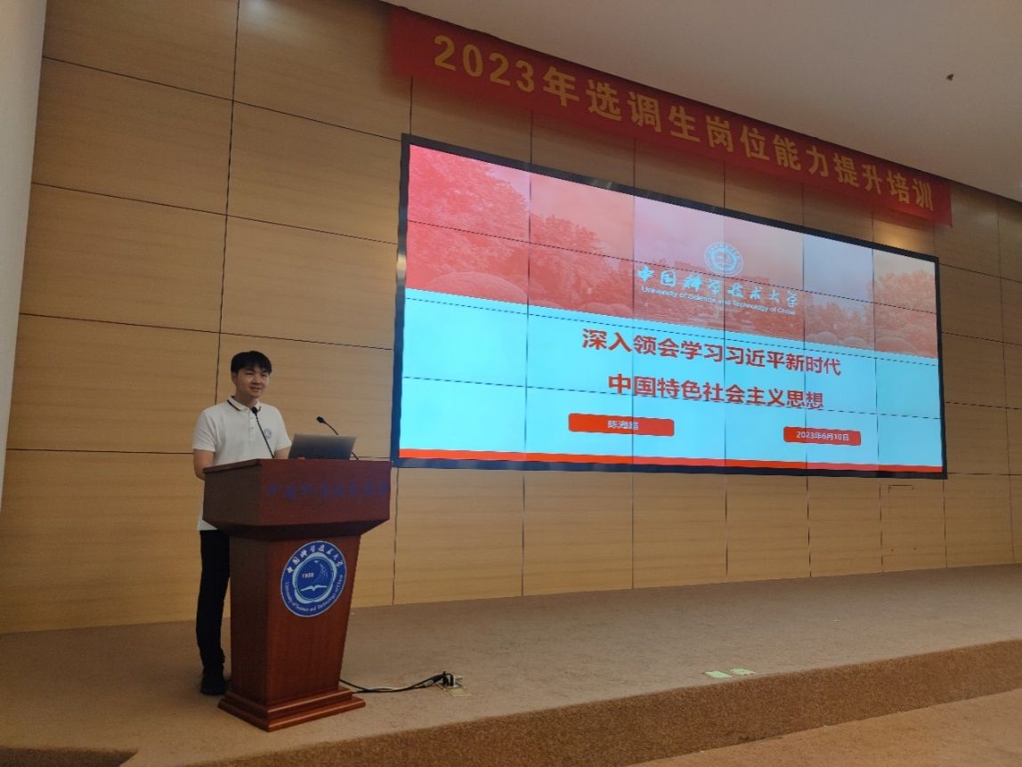 在习近平新时代中国特色社会主义思想概述培训中,马克思主义学院陈海超从学习党的二十大精神入手,深入浅出地解读了习近平新时代中国特色社会主义思想的理论方针、行动指南和实践成果,同时介绍了党委议事规则、好干部标准等内容。陈海超老师希望同学们牢记习近平总书记的嘱托,怀抱梦想又脚踏实地,敢想敢为又善作善成,做有理想、敢担当、能吃苦、肯奋斗的新时代好青年。