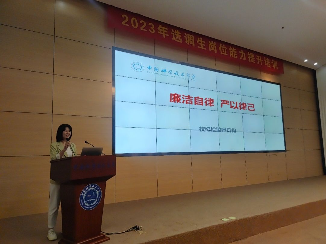 纪检监察机构左习习作主题为“廉洁自律 严于律己” 的廉洁教育报告。左老师向同学们介绍了年轻干部腐败易发多发的风险点,通过案例分析,警示同学们“系好人生的第一粒扣子”,希望同学们慎独慎微,始终坚守信念初心,时刻自警自醒自励自重,树立正确的廉洁价值观。