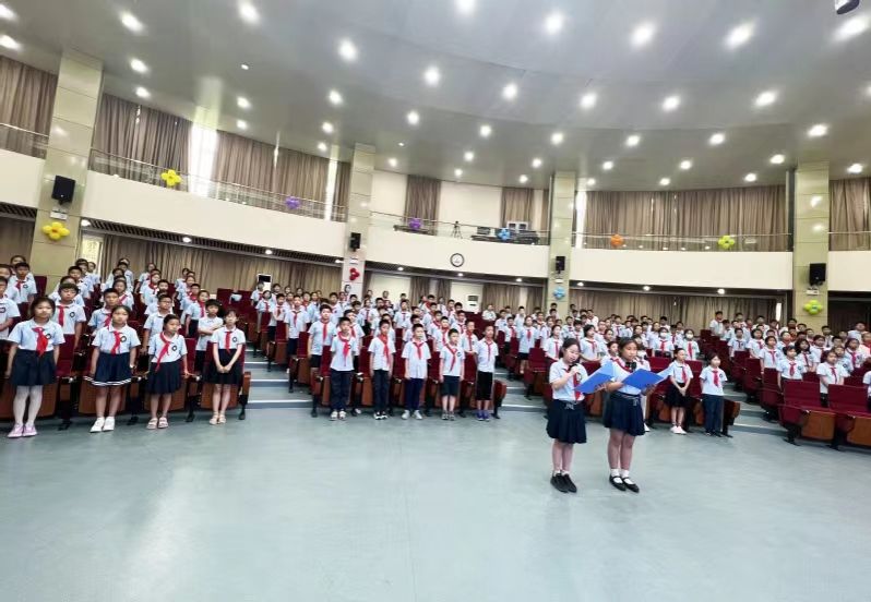 中小学课堂上,正进行着红色歌曲快闪活动,《八月桂花遍地开》响彻会场。该歌曲源自大别山民歌,是根据地人民为庆祝苏维埃政府成立所作,曲调优美、歌词生动。后来,它伴随着红军的足迹传遍了大江南北,成为一首著名的红歌;如今,它又被贝博附中的中小学生们再次唱响。来自五(2)班的解逸凡同学唱完红歌后兴奋地说:“这歌真好听,我好喜欢!祝愿我们的祖国花开满园,香飘四季!”