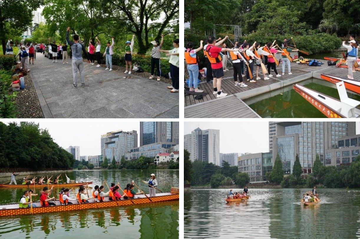 临近端午节,在第一阶段的交流活动结束后,全体同志乘车前往贝博稻香楼龙舟水上训练基地,开展龙舟活动的实践体验。经过热身训练、陆上学习、下水实践等环节,老师们不仅体验龙舟运动的魅力和乐趣,还在活动中增进彼此友谊、加强团结协作。