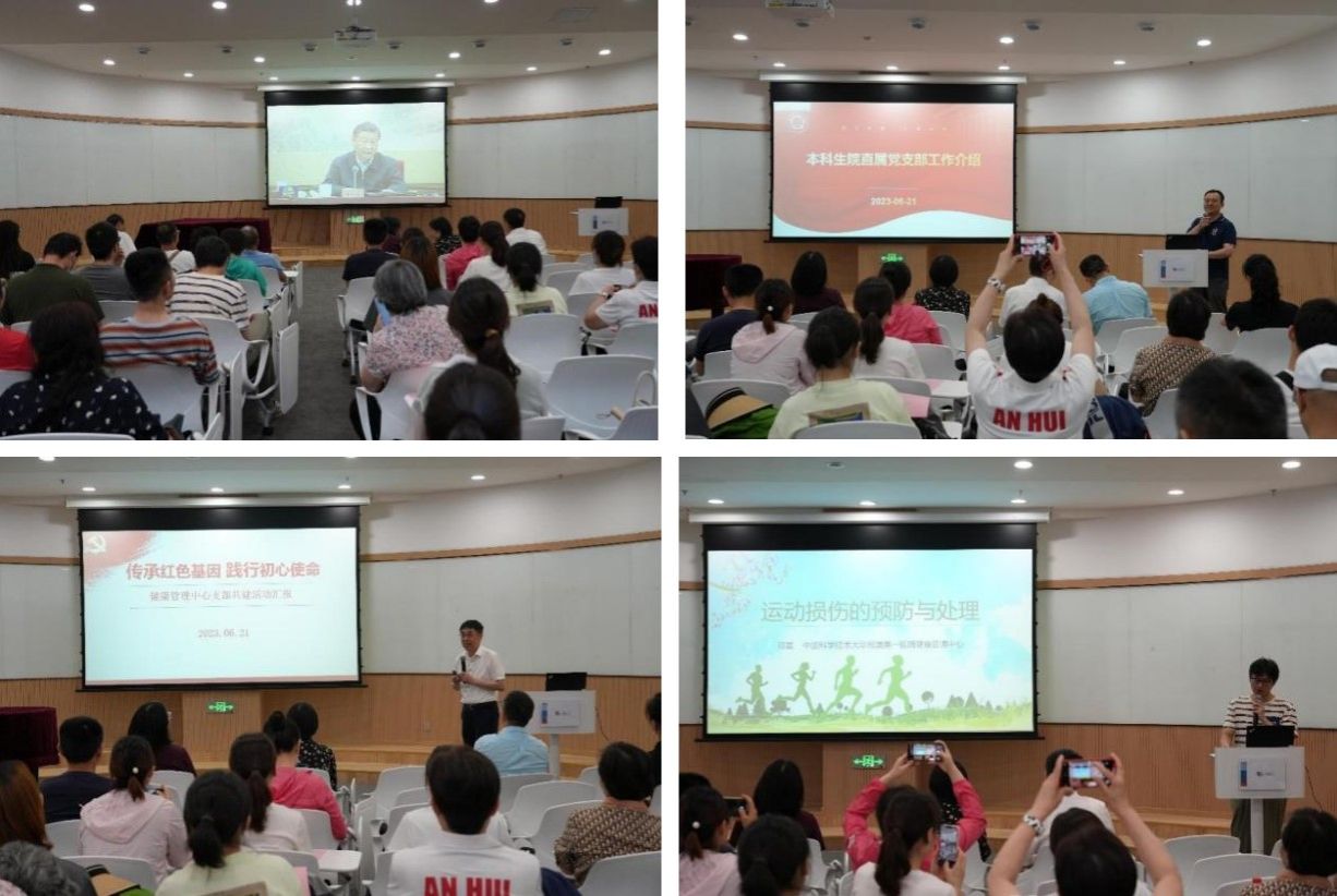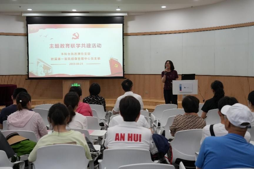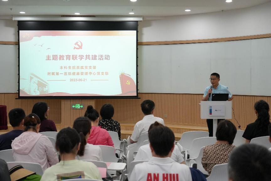 6月21日下午,本科生院直属党支部与附属第一医院健康管理中心党支部在艺术教学中心401教室开展主题教育联学共建活动。校党委常委、副校长、本科生院党工委书记周丛照,附属第一医院党委副书记、纪委书记郑红群,门急诊部主任、党总支书记鲍萍,健康管理中心党支部书记洪海鸥,以及本科生院直属党支部和附属第一医院健康管理中心党支部党员参加共建活动。本次活动由本科生院办公室副主任王童主持。