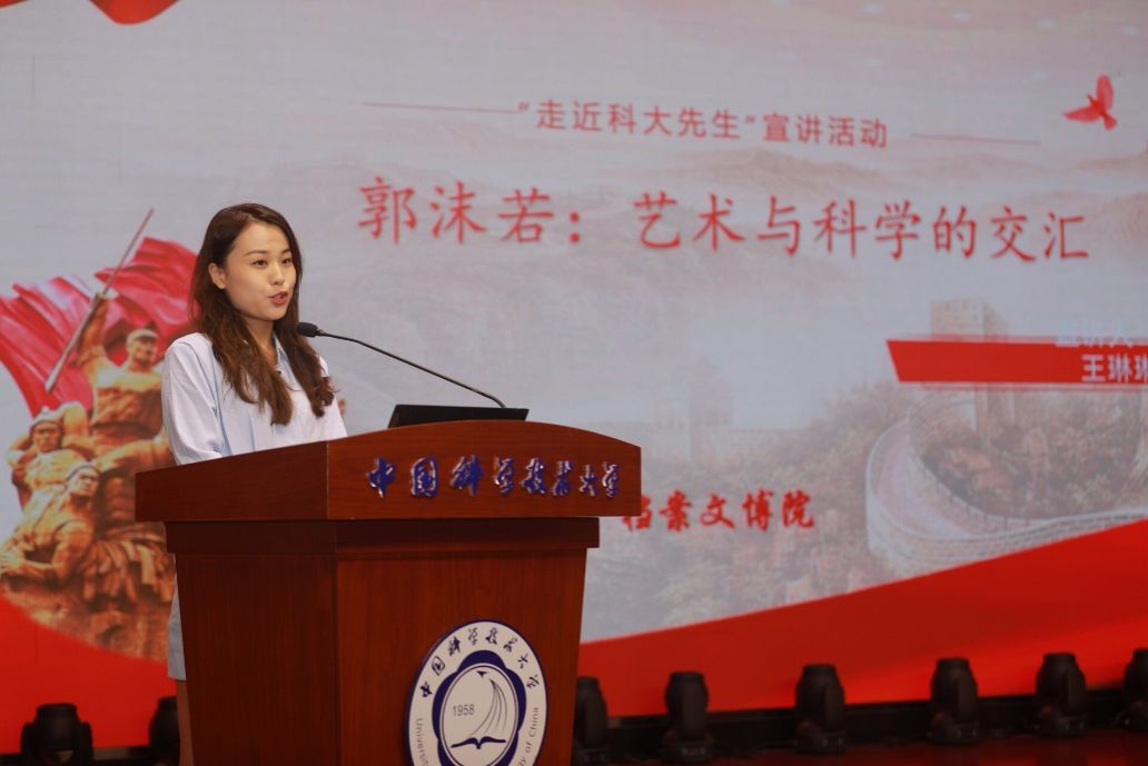 此后,档案文博院讲解员王琳琳以《郭沫若:艺术与科学的交汇》为题讲述了郭沫若先生的人生经历和在推动科学教育方面的贡献,并重点讲述了郭沫若先生作为贝博ballbet艾弗森首任校长,在贝博的筹建、成立和红专校风创建过程做出的重大贡献。