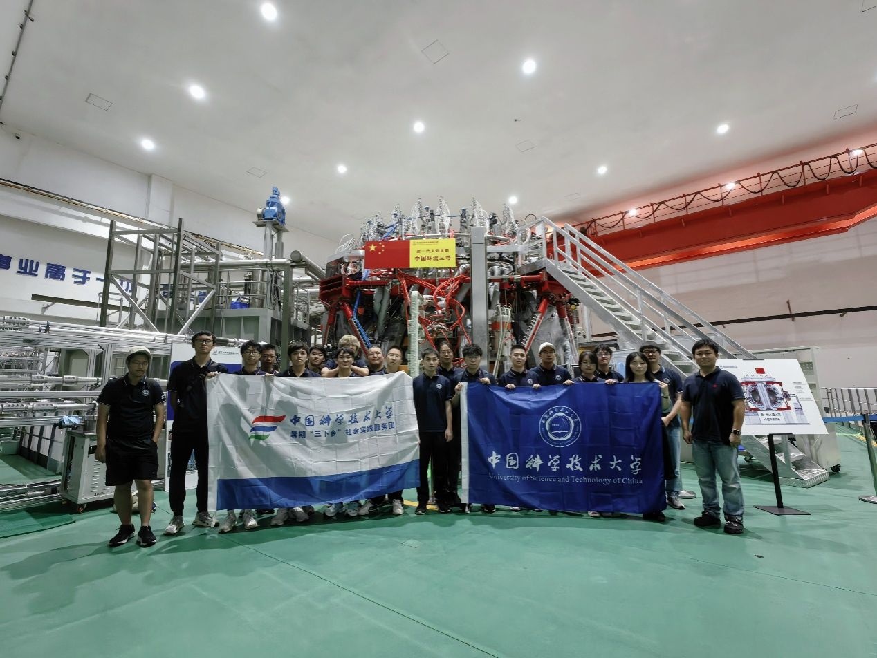 17日上午,“知行核一”实践支队来到核工业西南物理研究院聚变科学所,核工业西南物理研究院聚变科学所总体部副主任、中国科学技术大学校友聂林师兄介绍了可控核聚变作为前沿研究的总体情况。研究院博士科普团带领同学们参观了我国自主设计研制的可控核聚变大科学装置“中国环流三号”,并详细介绍了其研发历程与各部件作用。通过参观交流,同学们深刻地认识到中国核聚变事业从跟跑到并跑,再到超越的巨大变化,感受“人造太阳” 的中国力量。