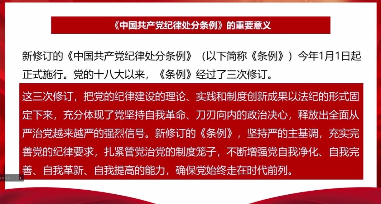 本次微党课大赛的成功举办,不仅为学生党员提供了一个展示自我、交流学习的平台,更重要的是通过比赛的形式,进一步增强了大家的党性观念和纪律意识。未来,苏州高研院学生党支部将继续创新党课形式和内容,丰富党员教育活动载体,进一步深化党纪学习教育,推动党史党纪学习教育常态化长效化,为培养更多优秀的青年党员贡献力量。