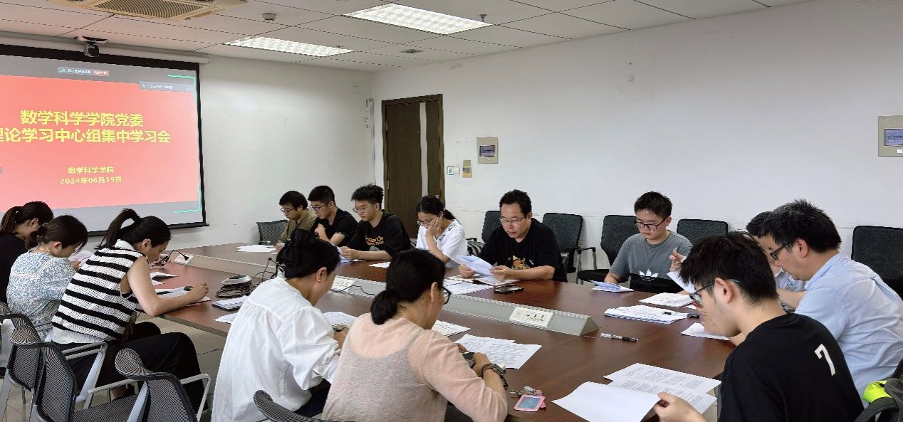 6月19日下午,数学科学学院党委理论学习中心组开展党纪学习教育,学习《习近平关于全面加强党的纪律建设论述摘编》和《发展新质生产力是推动高质量发展的内在要求和重要着力点》。会议在管理科研楼1508会议室举行,学院党政领导、各师生党支部委员参加会议,会议由学院党委书记左达峰主持。