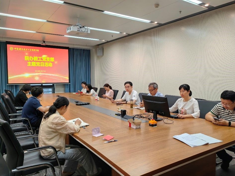 党纪学习教育开展以来,物理学院院办教工党支部加强统筹谋划,精心组织实施,不断丰富学习内容和形式,将党纪学习教育融入日常、抓在经常。为持续高效开展党纪学习教育,推动支部党员学纪、知纪、明纪、守纪,6月21日上午,院办教工党支部开展党纪学习教育主题党日活动。