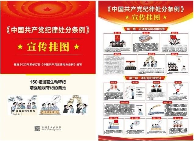 最后,支部成员来到物质科研楼四楼大厅处,集体学习《中国共产党纪律处分条例》宣传挂图。为帮助党员、干部更好地学习理解修订后的《中国共产党纪律处分条例》,营造风清气正的氛围,院办教工党支部举办为期一周的纪律处分条例宣传挂图展览教育活动。10张挂图,150幅手绘漫画,以纪律-案例-漫画的形式,逐条阐释和宣传《条例》,重点突出《条例》明令禁止的负面行为,帮助党员、干部弄明白能干什么、不能干什么,知晓红线底线,提高自身政治免疫力。