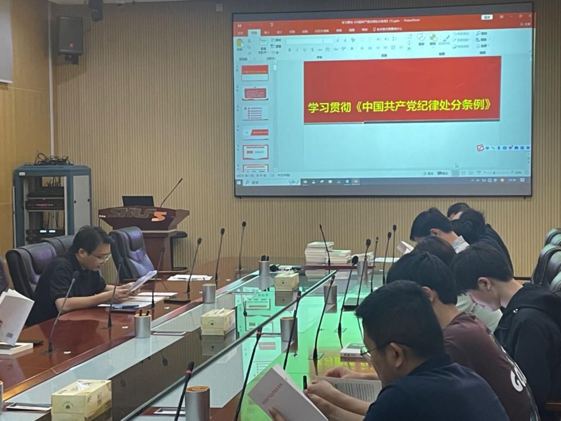 支部书记程旭东同志首先传达校党委关于持续推进党纪学习教育的工作部署。按照部署要求,当前党纪学习教育时间过半、任务过半,各级党组织要按照学校党纪学习教育实施方案要求,严格对标对表落实各项任务。活动中,他带领大家共同学习2023年新修订的《中国共产党纪律处分条例》(以下简称《条例》),重点讲解《条例》的修订背景、重要意义、主要看点、学习要求等。