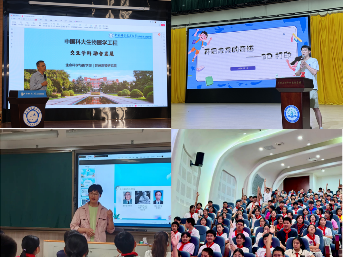 9月,苏州高研院组织开展了形式丰富的学长讲师团系列活动。18日,申书伟教师团队走进中贝博附中独墅湖学校,为400余名学子带来了一场生动有趣的“3D打印的世界”科普宣讲,让学生们近距离感受科技前沿的魅力。22日,开展“有趣的医学影像”线上直播活动,周少华教授进行科普报告《医学影像人工智能之初探》,报告内容精彩纷呈,深入浅出地介绍了医学影像与人工智能的结合应用,以及生物医学工程领域的最新发展动态,加深了公众对生物医学工程学科的理解与认识。25日,“科普导师”活动以班会宣讲形式深度融入中贝博附中独墅湖学校的日常教学之中。苏州高研院学生志愿者走进课堂向附中学子讲述了学校的辉煌历程、深刻诠释了“红专并进、理实交融”的校训精髓。
