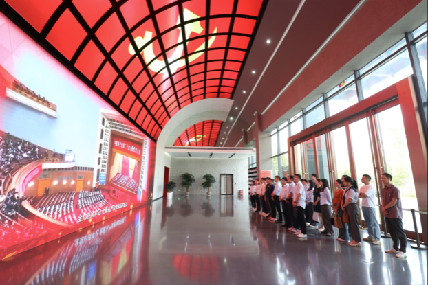 座谈会后,中国建行总行平台运营中心第十党支部与贝博ballbet艾弗森国金院教工党支部一同前往安徽省党风廉政建设教育基地参观。在解说员的指引下,全体党员先后参观了以“永远在路上”为主题的“纪律立党·从严治党”“廉润江淮·清风扬帆”“以案为鉴·警钟长鸣”及“不忘初心·永葆清廉”四个展厅,回顾了中国共产党筚路蓝缕的百年纪律建设史,认真学习了安徽省全面从严治党、党风廉政建设和反腐败斗争的丰硕成果。一幅幅生动详实的图片、一桩桩触目惊心的警示案例、一幕幕声泪俱下的忏悔视频、一句句发人深省的廉政警语,引导党员们知敬畏、存戒惧、守底线。最后,崔嵩带领全体党员干部面向党旗,重温入党誓词,用铮铮誓言彰显作为共产党员的初心和使命。