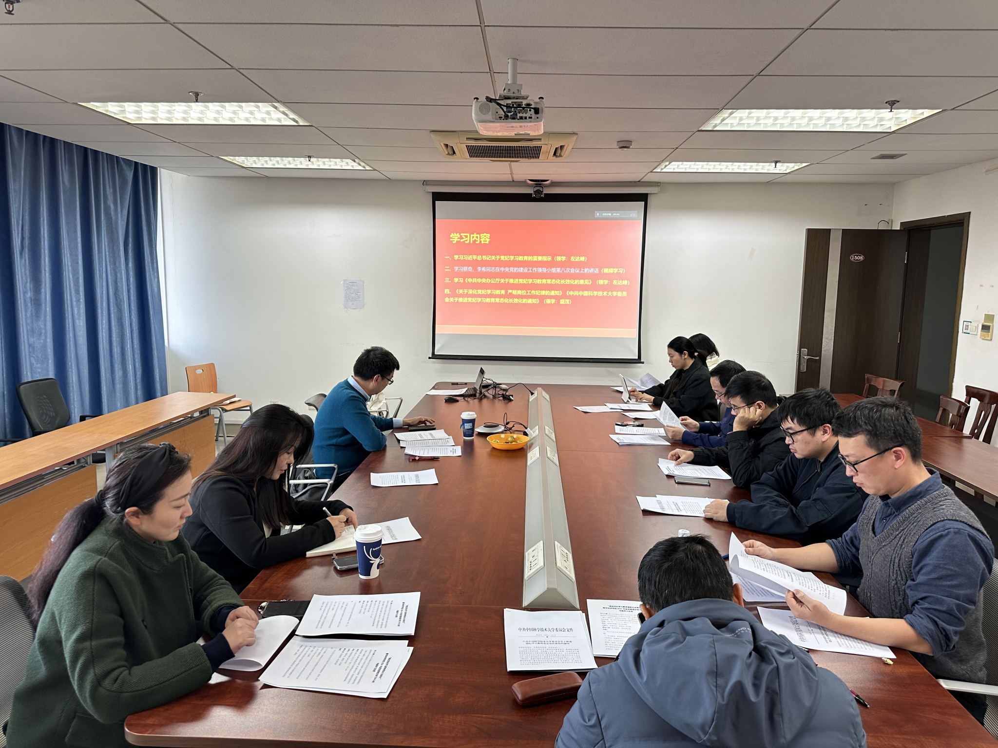 2024年11月27日下午,数学科学学院党委理论学习中心组开展本年度第四次集中学习暨“推进党纪学习教育常态化长效化”专题学习会。会议在管理科研楼1508会议室举行,学院党政领导、各师生党支部委员参加会议,部分领导线上参会,学院党委书记左达峰主持会议。