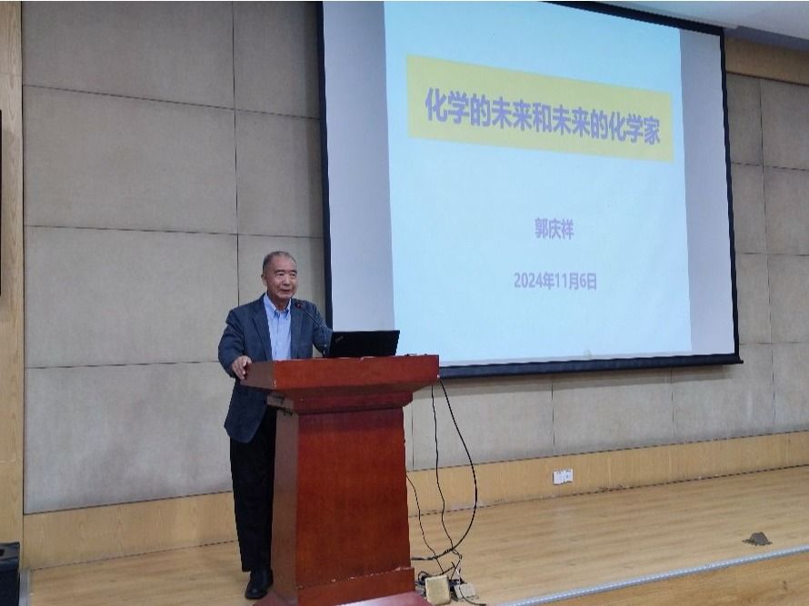 为传承科学精神,争做时代新人,引导广大师生赓续贝博精神,传承优良校风,11月6日下午,由学校关心下一代工作委员会、老科技工作者协会、化学与材料科学学院、离退休干部党委联合主办的老科学家走进学院专题报告会在环资楼报告厅顺利举行。贝博关工委成员郭庆祥教授应邀作题为《化学的未来和未来的化学家》专题报告,化学与材料科学学院党委书记闫立峰教授、党委副书记周小东老师、化学系教工代表、化学与材料科学学院2024级全体本科生近150人参加报告会,闫立峰主持报告会。