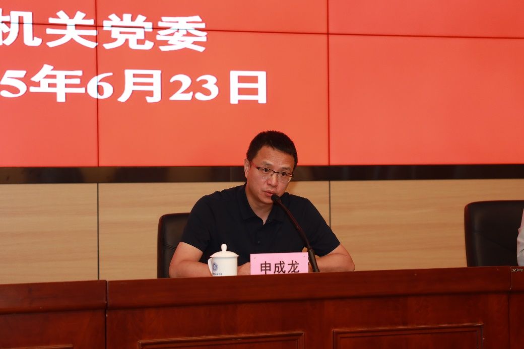 为深入贯彻落实习近平总书记关于作风建设的重要论述,高质量开展深入贯彻中央八项规定精神学习教育,持续深化全面从严治党,筑牢机关党员干部和教职工的思想防线,6月23日下午,机关党委在东区理化大楼东三报告厅召开深入贯彻中央八项规定精神学习教育警示教育会暨师德教育会,校党委常委、党委组织部部长、机关党委书记申成龙主持会议并讲话,机关全体教职工参加会议。