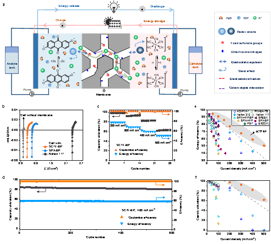 图4. 三嗪框架聚合物离子膜实现水系有机液流电池快充