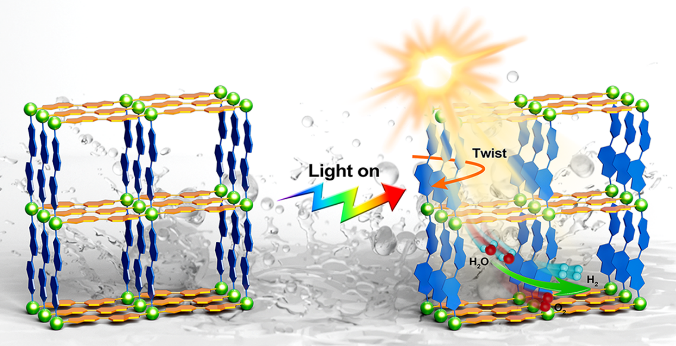 中国科学技术大学江海龙教授团队联合罗毅教授和江俊教授团队在人工光合成研究中取得新进展。研究成果以“Dynamic structural twist in metal–organic frameworks enhances solar overall water splitting”为题,于8月12日在线发表在《自然·化学》(Nature Chemistry)上。应期刊编辑邀请,研究团队、审稿人和编辑共同撰写的研究简报(Research briefing)也在线刊登,期刊审稿人和编辑对该工作给予高度评价,称我们提出了一个“新颖、颠覆性的概念”(a novel and disruptive concept),并认为这为未来发展更高效的光催化剂提供了“令人激动的进展”(an exciting development)。