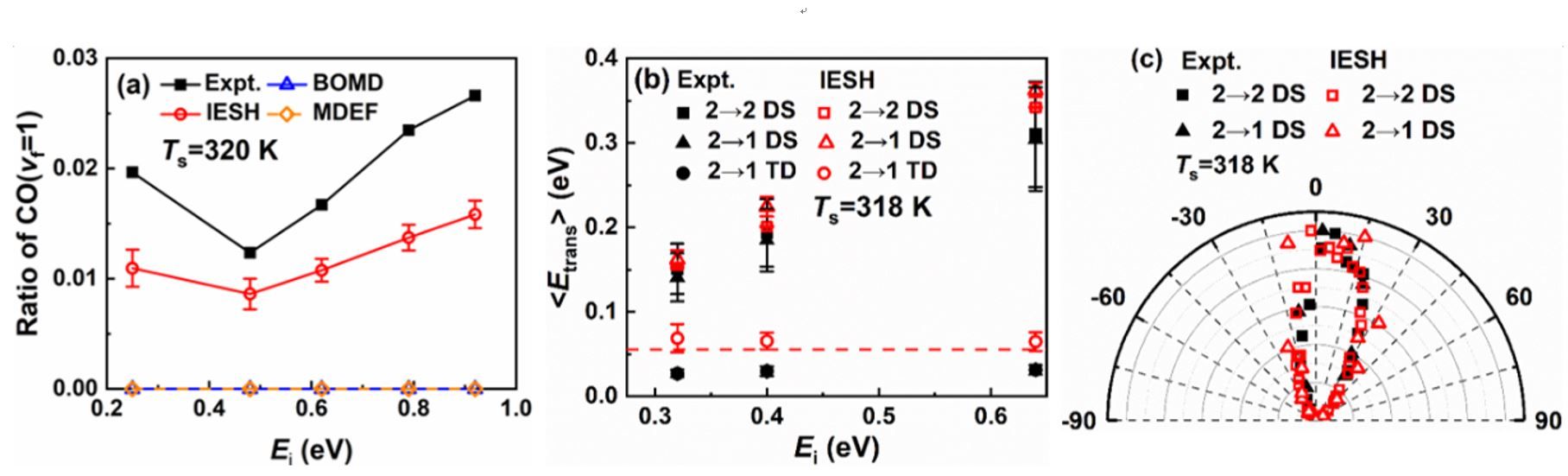 由于金属表面连续的电子能级,分子与金属表面相互作用时,金属表面的电子很容易被激发,导致分子与金属表面间的非绝热能量转移。包括分子在金属表面极短的振动态寿命、化学电流、氢原子从金属表面散射后剧烈的能量损失、以及振动激发态的NO和CO分子从金属表面散射后的振动弛豫在内的众多实验现象都证明非绝热能量转移广泛存在于各种界面过程中,因此研究非绝热能量转移对于理解化学吸附、电化学、等离激元催化等界面过程具有重要意义。然而,分子与金属表面相互作用的过程中,分子振动、转动、平动与表面声子和电子会耦合在一起,导致极为复杂的能量转移过程,因此,准确描述涉及电子转移的分子在金属表面的非绝热动力学是理论界长期面临的挑战。