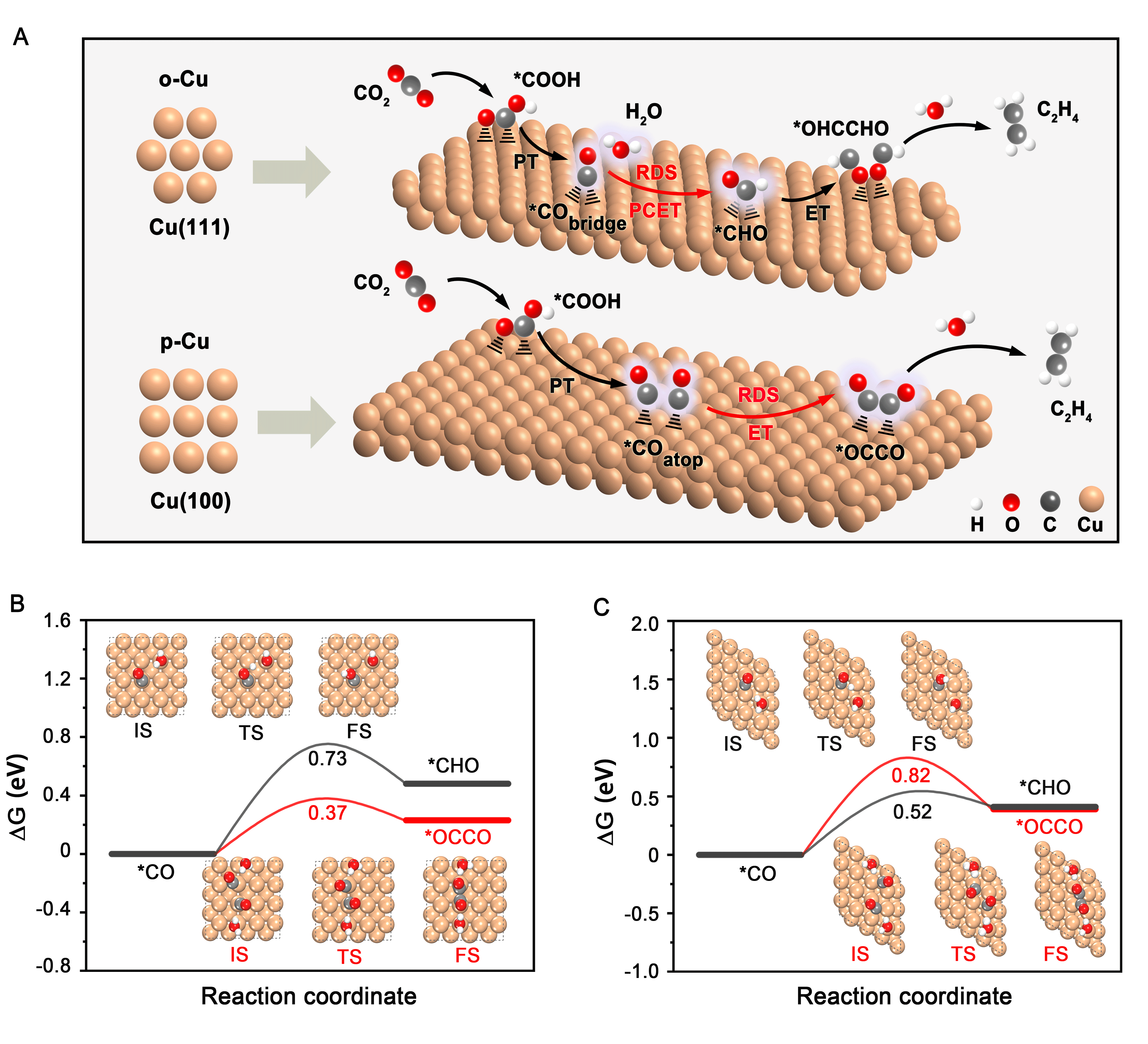 图1:铜催化剂的晶面决定CO2到乙烯转化过程的关键决速步