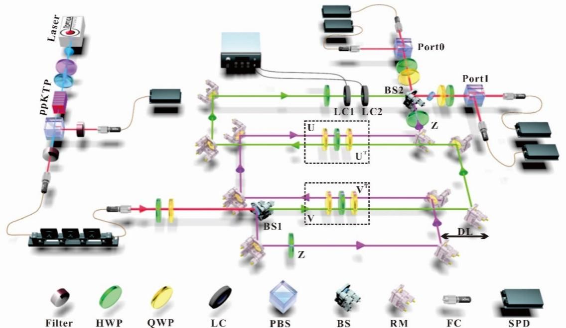 图2 实现量子演化与其反向演化相干叠加的实验装置图。
