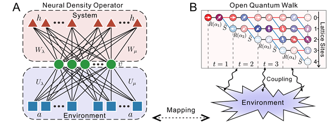 图1. 神经网络模型与开放量子行走系统之间的映射。