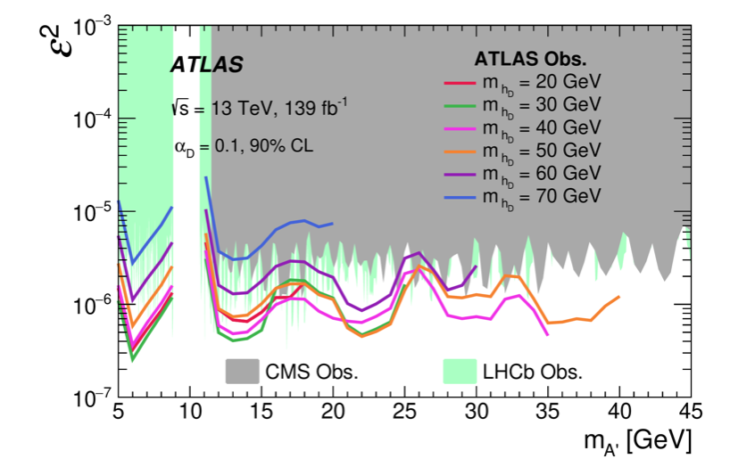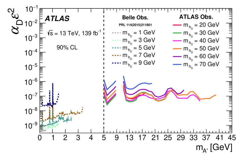 图2:ATLAS实验获得的暗光子联合耦合参数aDe2的90%置信上限