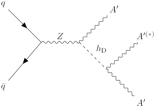 图1:利用标准模型Z玻色子的稀有衰变来寻找暗光子A’,其中hD为暗希格斯粒子